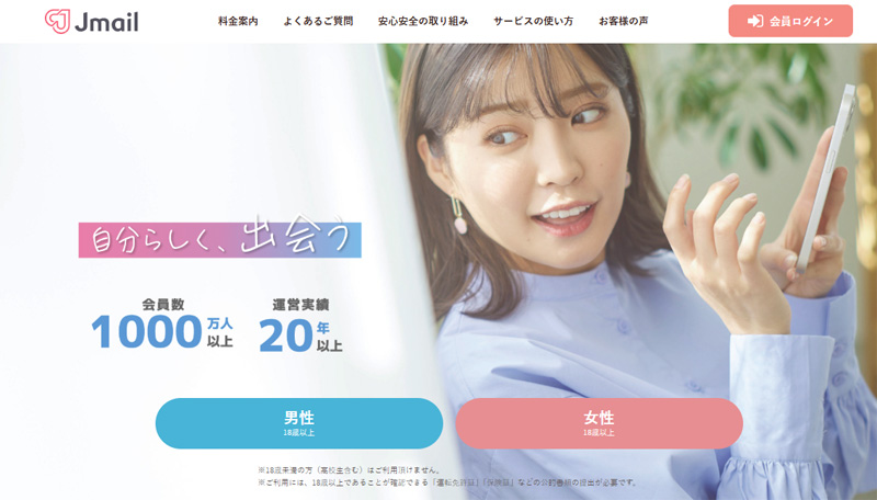 Jメールは20年以上の運営実績を持ち、会員数は1,000万人を超えるなど、多くのユーザーに利用されています。